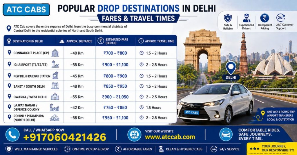Popular Drop Destinations in Delhi – Fares & Travel Times