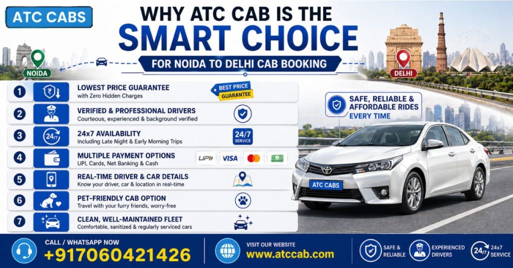In a city as dynamic as Noida — home to thousands of IT professionals, business owners, and commuters — the demand for a dependable cab service to Delhi is enormous. ATC Cab has built its reputation on several pillars that consistently set it apart from other cab aggregators in the NCR region.